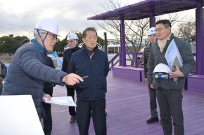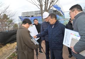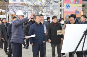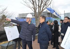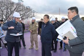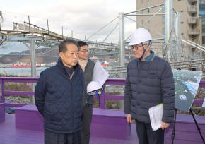 - 사진설명 4일 서동욱 남구청장이 장생포 ‘The Wave(더 웨이브)사업’ 현장을 방문, 추진 상황 등을 점검하고 있다.