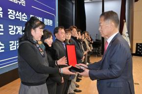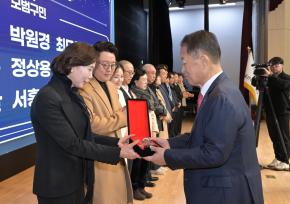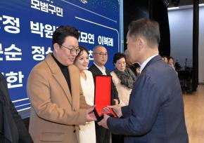 - 사진설명 30일 서동욱 남구청장이 남구청 대강당에서 열린 ‘2025년 남구 구민표창 수여식’에서 남구 구민대상 및 우수통장에게 표창패를 수여한 뒤 기념촬영을 하고 있다.