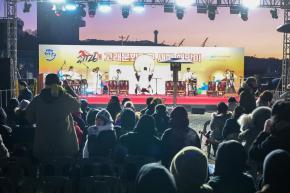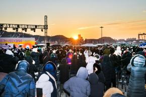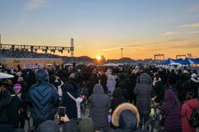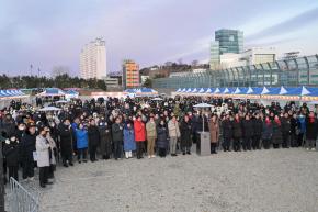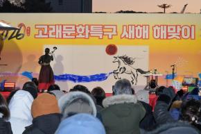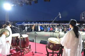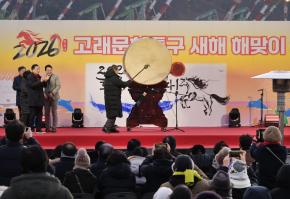 - 사진설명 1일 서동욱 남구청장이 장생포 고래문화특구에서 2026 병오년 새해 해맞이 행사에서 2026년의 힘찬 출발을 기원하는 북을 치고 있다.