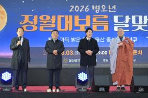 - 사진설명 3일 서동욱 남구청장이 태화강둔치에서 열린 ‘2026년 병오년 정월대보름 달맞이’ 행사에서 축사를 하고 있다.
