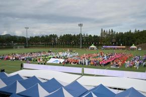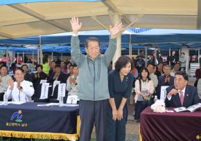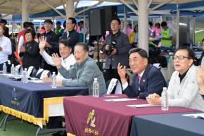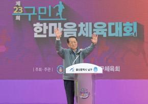 - 사진설명 25일 문수국제양구장에서 열린 제23회 구민 한마음체육대회 개회식에서 서동욱 남구청장, 이상기 남구의회의장, 김두겸 울산시장, 시·구의원, 내빈, 구민 등이 기념촬영을 하고 있다.
