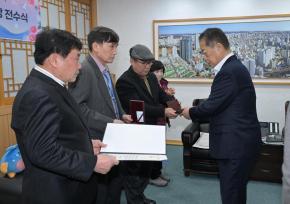 - 사진설명 11일 서동욱 남구청장이 구민대화방에서 6.25전쟁에 참전해 무공을 세운 故 조병화 중사의 유족에게 화랑무공훈장을 전수한 뒤 기념촬영을 하고 있다.