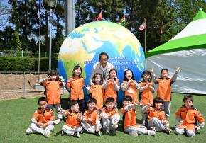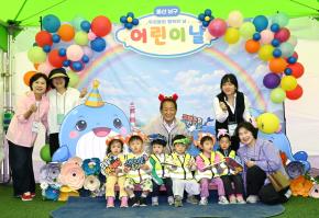 - 사진설명 24일 서동욱 남구청장이 문수국제양궁장에서 열린 제104회 어린이날 기념어린이날 한마당 행사에 참석해 어린이와 보육교사를 격려하고 기념촬영을 하고 있다.