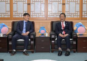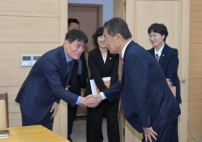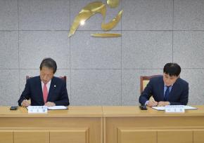 - 사진설명 20일 서동욱 남구청장과 이상현 울산공업고등학교 교장(왼쪽)이 남구청 3층 회의실에서 교육부 주관 2026년 협약형 특성화고등학교 공모사업 추진을 위한 업무협약을 체결하고 있다.