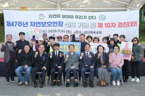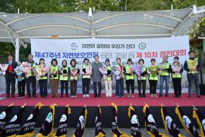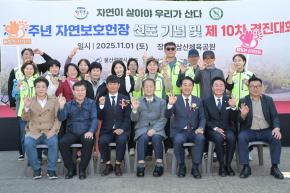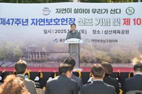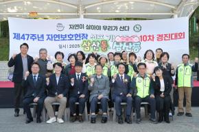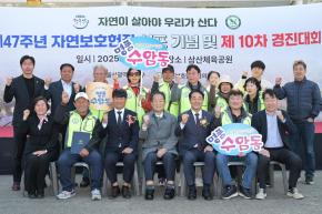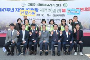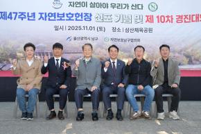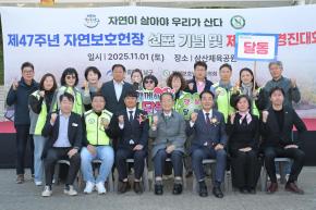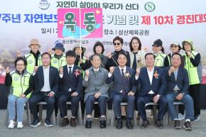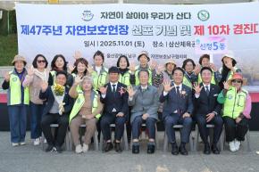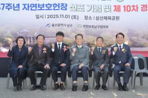 - 사진설명 1일 삼산배수장에서 열린 (사)자연보호중앙연맹 울산남구협의회(회장 박재경) 제47주년 자연보호 헌장 선포 기념 및 제10차 경진대회에서 서동욱 남구청장과 이상기 남구의회의장, 시·구의원, 내빈, 회원 등이 기념촬영을 하고 있다.