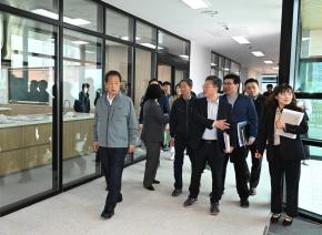 - 사진설명 10일 서동욱 남구청장이 월평로81번길19에 위치한 팔등가족행복센터 개관을 앞두고 담당공무원과 현장을 방문해 수영장, 어린이 실내놀이터 등 시설물을 점검하고 있다.