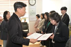 기타 공유하기 페이스북 트위터 블로그 카카오스토리 프린트 2026. 4. 1.자 수시 인사 임용장 교부 조회수 : 12 이전사진보기 다음사진보기 사진다운로드 출력하기 이메일보내기 원본요청 제목 2026. 4. 1.자 수시 인사 임용장 교부 촬영장소 부구청장실 촬영일 2026년 03월 27일 사진설명 카테고리명 기타 관련사진 3 이전사진보기 다음사진보기 사진보기 사진보기 사진보기 이 사진은 울산광역시 남구에 저작권이 있으며 광고 및 상업적 용도의 사용을 금합니다.무단 사용시 모든 법적 문제는 사용자에게 있음을 알려드립니다.