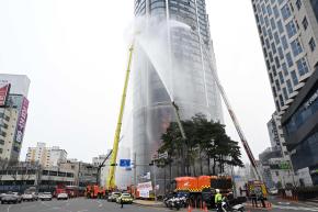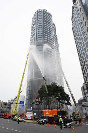 - 사진설명 25일 태화강 풍림엑슬루타워 및 남구 둔치 일원에서 열린 READY Korea 고층건축물 화재 대응 훈련에 행정안전부 김용균 자연재난실장, 이채권 남구부구청장이 참석해 훈련을 참관하고 기념촬영을 하고 있다.